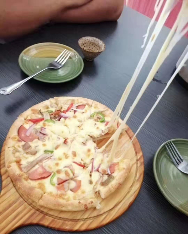 9. 就是开头讲的那个情况,披萨都凉了,还想拉丝怎么可能。任何芝士凉了都不会拉丝, 如果拉丝那就奇怪了,你敢吃吗?为什么会有这个问题呢?凉了拉丝不拉丝这个问题, 因为牵扯到外卖问题。目前很多披萨店都是在做美团和饿了么。尤其是冬天, 从店到顾客手 里可能时间有点久,客户收到披萨后就凉了,一吃就不拉丝了。